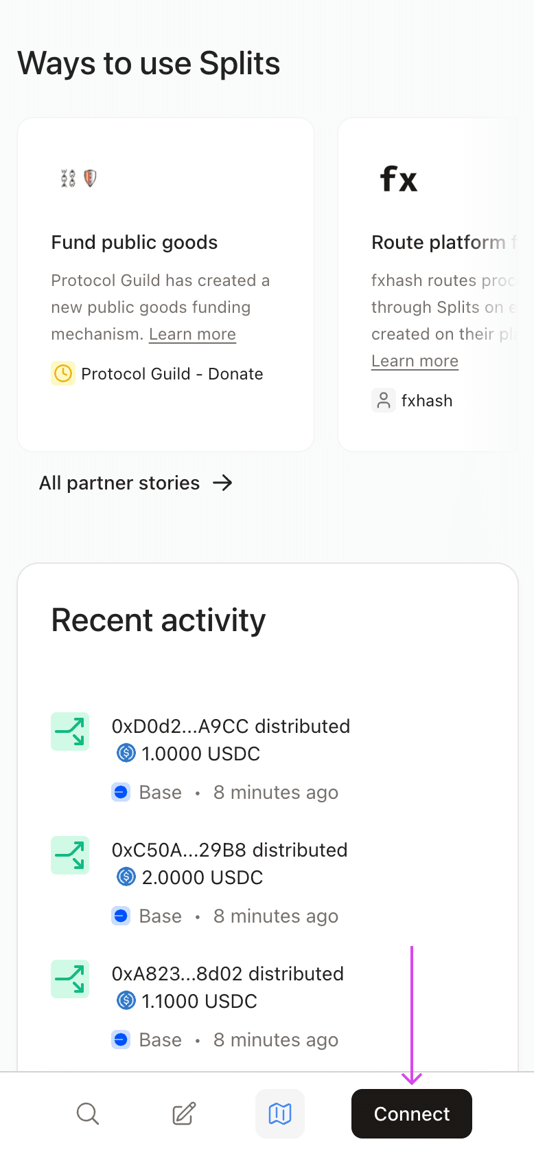 Tap on "Connect Wallet" in the bottom-left corner on desktop or bottom-right corner on mobile and connect the wallet that you used on Sound